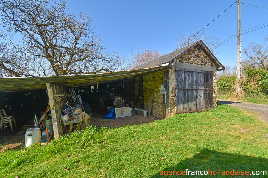 La propriété se trouve en zone agricole de la commune et on ne décompte pas moins de 13 espaces supplémentaires (dont les principaux ont l’électricité) à la maison d’habitation, témoins du passé agricole de ce bien. Tout d’abord, un garage (env. 20m²) en pierres fermé pour votre voiture ou petit camping-car se trouve derrière la maison, puis dans le prolongement, mais séparé de la maison, une grande grange en pierres avec un extension en parpaings (env. 120m² au sol) vous permettra toutes les options de stockage que vous pourriez envisager. Attenant à cette grange, pourquoi ne pas recréer un gîte dans la maison ancienne en pierres (env. 40m² au sol + grenier aménageable. En face de la grange, un ancien four à pain (four toujours présent, ainsi que sa cheminée). Son fournil fait environ 14m² et il y a un étage au-dessus (env. 23m²). L’ancienne petite étable attenante au four (env. 3m²) a été transformée en buanderie pour la machine à laver avec arrivée d’eau et d’électricité. Viennent compléter cette liste 4 hangars en structure bois/métal pour une surface d’environ 198m² et deux petits clapiers à lapins.