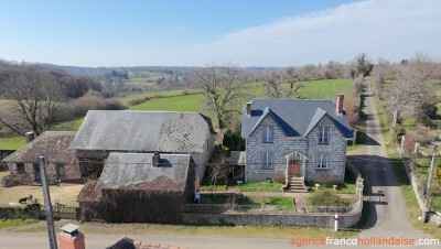 Maison en pierres de 4/5 chambres et 128m², dont les deux grands « chiens assis » procurent un charme réel, située dans un petit hameau de la commune de La Porcherie, à l’extrême sud-est de la Haute-Vienne. Sa situation géographique est un atout pour tous les amoureux de la pierre souhaitant vivre à la campagne, tout en restant proche de la ville par la route ou par le train.