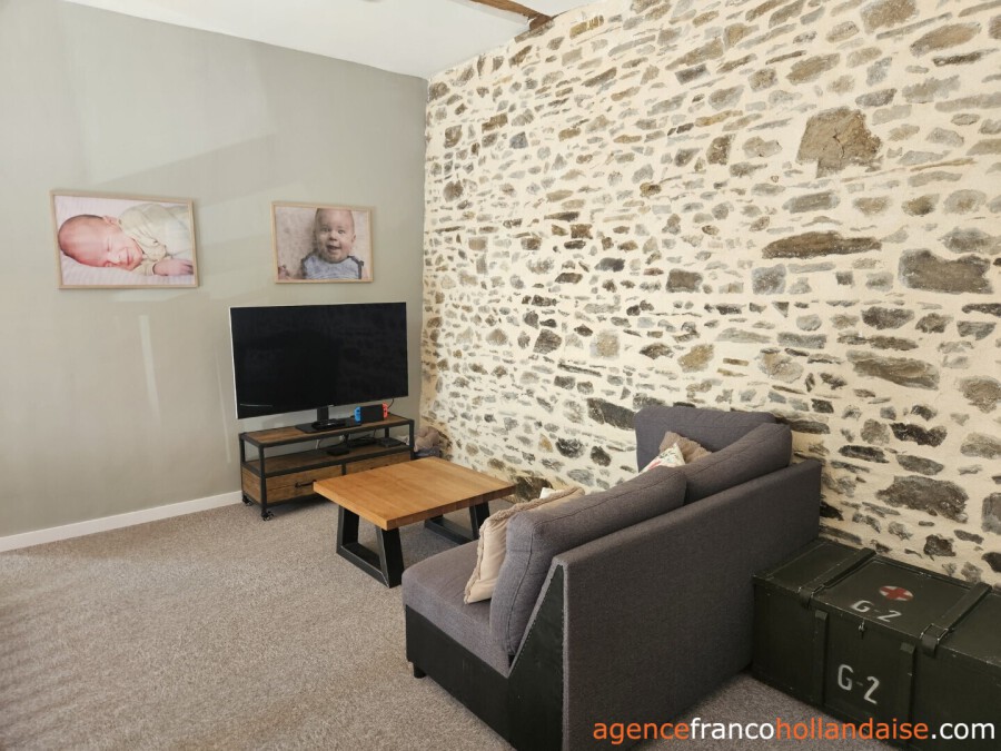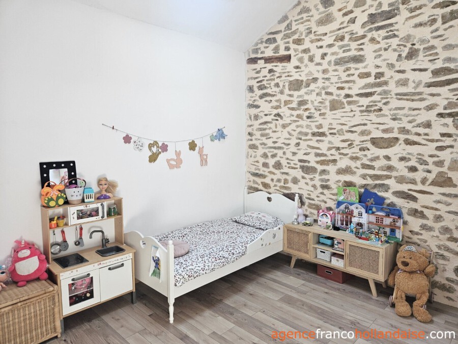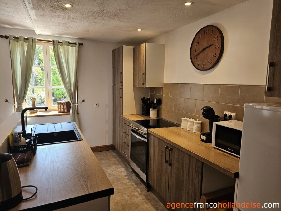 La deuxième maison est située à côté de la maison principale (ancienne grange). Elle dispose d'une cuisine spacieuse, d'un salon avec poêle à bois, d'une douche et de toilettes au rez-de-chaussée. À l'étage, il y a une chambre avec salle d’eau. Cette maison a également accès au jardin commun avec piscine.