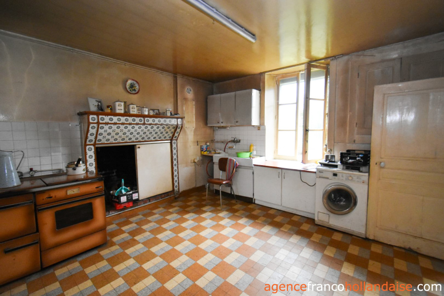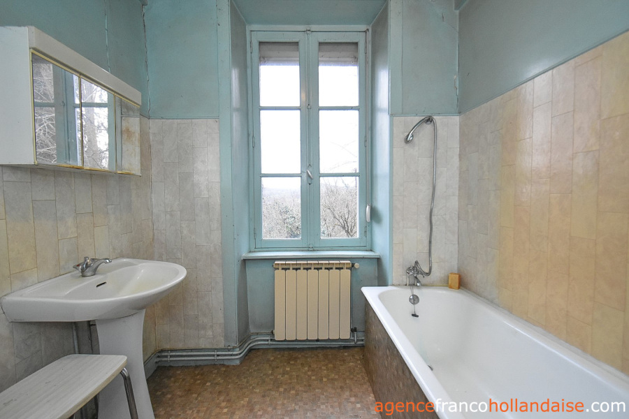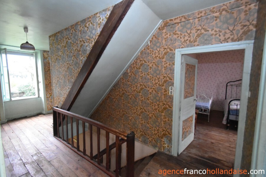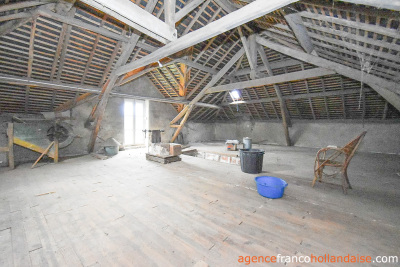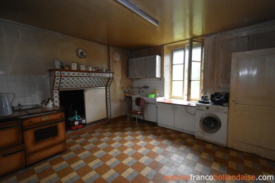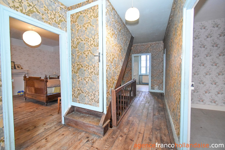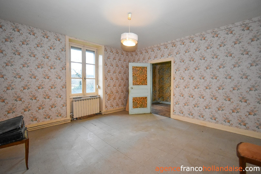 Bien qu’habitable en l’état, la maison nécessite cependant une modernisation générale, notamment décoration, électricité, menuiseries, plomberie, isolation, assainissement. On peut conserver son mode de chauffage ou le moderniser. Il y a une alimentation en eau par source (non-filtrée) avec plusieurs conduites en PER. Un raccordement à l’eau publique existe, mais il se trouve à une trentaine de mètres de la maison. Ses atouts sont architecturaux et structurels, à commencer par une belle toiture en ardoise naturelle refaite il y a une vingtaine d’années, un plancher hourdi au rez-de-chaussée qui est venu remplacer des planchers vieillissants, de grandes pièces avec belle hauteur sous plafonds, de grandes ouvertures lumineuses, de beaux planchers au 1er étage et au grenier.