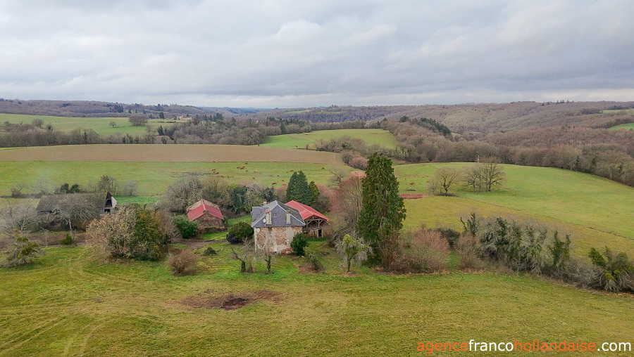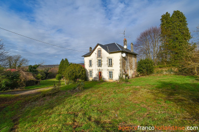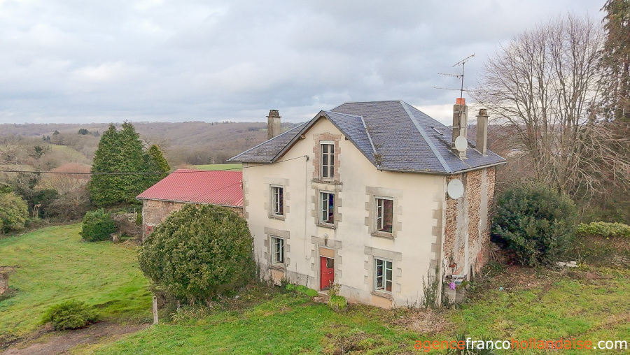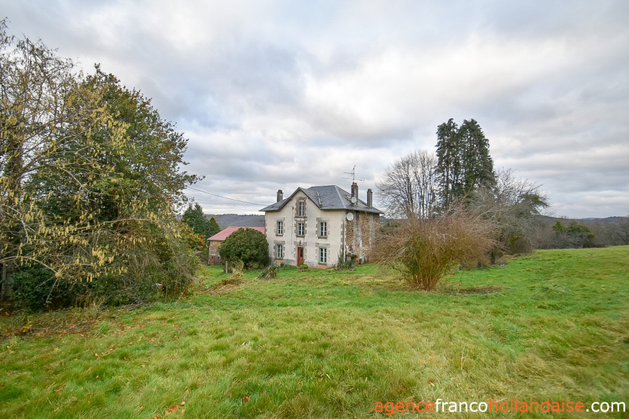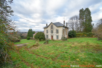 A environ 35 minutes de Limoges centre, 10 minutes de Châteauneuf-la-Forêt, 15 minutes d’Eymoutiers, au fond d’un hameau sans aucun passage, au bout de son chemin sans issue, au centre d’un grand terrain vallonné et arboré de près de 4 hectares avec source et fontaine et de belles vues sur les collines environnantes, voici une situation privilégiée que celle dont bénéficie cette propriété rurale en pierres. Elle se compose d’une grande maison bourgeoise de 1925 et 160m² habitables avec grenier aménageable, de deux maisons anciennes du 19ème siècle avec cantou et four à pain, d’une grange, d’une bergerie, de porcherie et d’un grand hangar avec stabulation incorporée. Dans une région où une belle localisation est des plus recherchées, il ne faut absolument pas que vous manquiez ce bien !