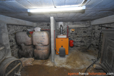 La cave en terre battue saine, car bien ventilée, est accessible, soit depuis le palier d’entrée, soit par une porte extérieure et renferme le chauffage central au fioul. Toutes les pièces habitables de la maison sont équipées de radiateurs en fonte. Il y a 3 cheminées existantes, dont une double dans la cuisine, sur laquelle est raccordée la cuisinière, permettant d’envisager la pose de poêles à bois.