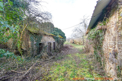 La propriété est située dans une zone agricole du plan d’urbanisme de la commune dont elle fait partie, mais il y a un zonage constructible là où se trouvent les bâtiments principaux. Après autorisation d’urbanisme, il sera normalement possible d’aménager une partie des dépendances. Situées en retrait et à l’avant, mais décalées de la maison pour former une sorte de cour intérieure et avec de bonnes toitures, on trouve la grange, sa bergerie et deux maisons du 19ème siècle. On souhaitera garder la grange/bergerie pour stocker ou avoir des animaux (env. 140m² au sol), mais pourquoi ne pas restaurer les anciennes maisons ? L’une est accolée à l’autre, mais sont séparées par un mur en pierres. Elles ont une surface au sol combinée d’environ 87m² et sont vraiment dans leur jus, mais disposent de deux pièces chacune, l’une avec un grenier perdu et l’autre avec un grenier aménageable. L’une d’elles possède une cave, un cantou et un four à pain (à restaurer). En face, on pourra utiliser les pierres d’une ancienne porcherie trop endommagée pour être sauvegardée.