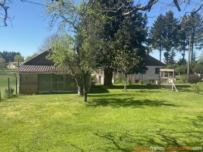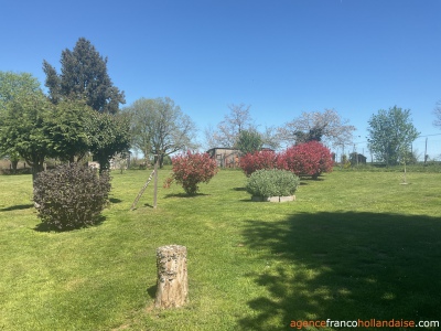Le terrain, d'une superficie de pas moins de 5 292 m², est un véritable paradis pour les amateurs de calme et d'espace. À l'avant, on trouve une belle bordure de fleurs, et le jardin est de plain-pied avec la maison. Grand jardin entièrement clos, recouvert de pelouse et bordé d'arbres matures, notamment des pêchers, des cerisiers, des noyers, des pommiers, des figuiers, des poiriers, des pruniers et divers arbustes fruitiers bien implantés : groseilliers rouges, cassissiers, myrtilliers, groseilliers à maquereau, ainsi que des parcelles de framboisiers et de fraisiers et diverses herbes aromatiques.