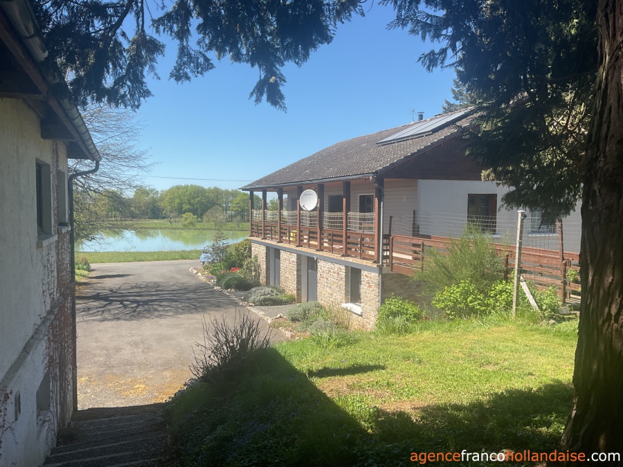 Située au premier étage, la maison principale offre un cadre de vie spacieux et lumineux. La cuisine moderne (21 m²) est équipée d’un îlot central et bénéficie de finitions haut de gamme. Depuis la cuisine et le salon, des doubles portes donnent accès au balcon couvert. Le salon (23 m²) est lumineux et chaleureux, notamment grâce au poêle à bois. Il y a également une salle à manger séparée (18 m²), qui donne également accès au balcon. À cet étage se trouvent trois chambres de tailles différentes ((14 m², 12 m² et 10 m²) , dont une avec toilette et lavabo. La salle d'eau spacieuse est entièrement équipée d'une douche à l'italienne, d'un lavabo et de toilettes. Depuis la terrasse, orientée à l'ouest, vous bénéficiez d'une belle vue sur le paysage vallonné.