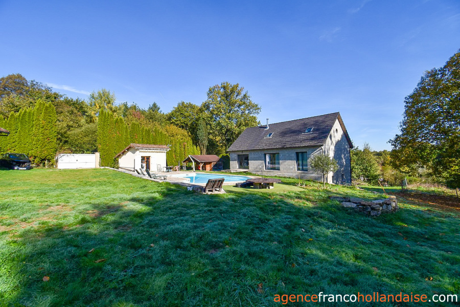 Située dans un petit hameau tranquille d’une commune vivante, à 10 mn à l’est de Saint-Léonard-de-Noblat et environ ¾ d’heure de Limoges centre, cette maison de famille de construction récente n’attend plus que vous. Elle dispose de 5 chambres, dont une en rez-de-chaussée, deux salles de bain, un grand sous-sol complet avec garage, diverses dépendances, une piscine enterrée, un étang, un grand potager et une partie boisée. Une parcelle totale de près de 9 000m² clôturée vous invitera à profiter des magnifiques extérieurs. Vos enfants et vos animaux domestiques apprécieront !