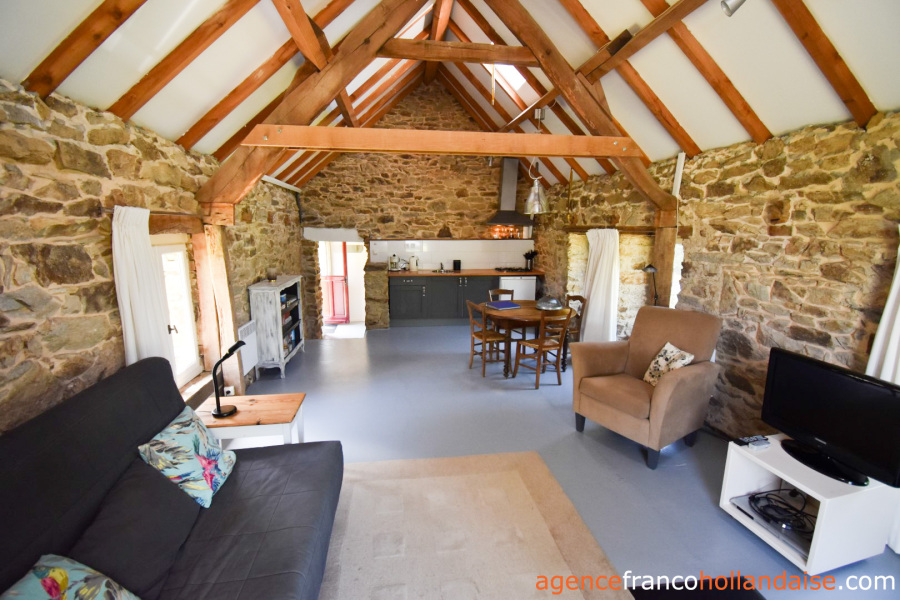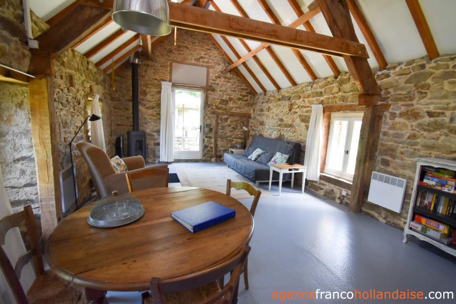 De gîte beschikt over een sfeervolle woonkamer van circa 40 m2 met open keuken, eettafel en zitgedeelte met een comfortabele slaapbank. Er is een houtkachel voor de koudere periode van het jaar. Vanuit dit woongedeelte is er direct toegang tot het eigen terras met uitzicht op de omliggende weilanden. De grote slaapkamer beschikt over een tweepersoonsbed, maar is groot genoeg om er ook nog een kinderbedje bij te zetten. In de tweede slaapkamer staat een stapelbed voor de oudere kinderen. De moderne badkamer beschikt over een douche, wastafel en toilet.